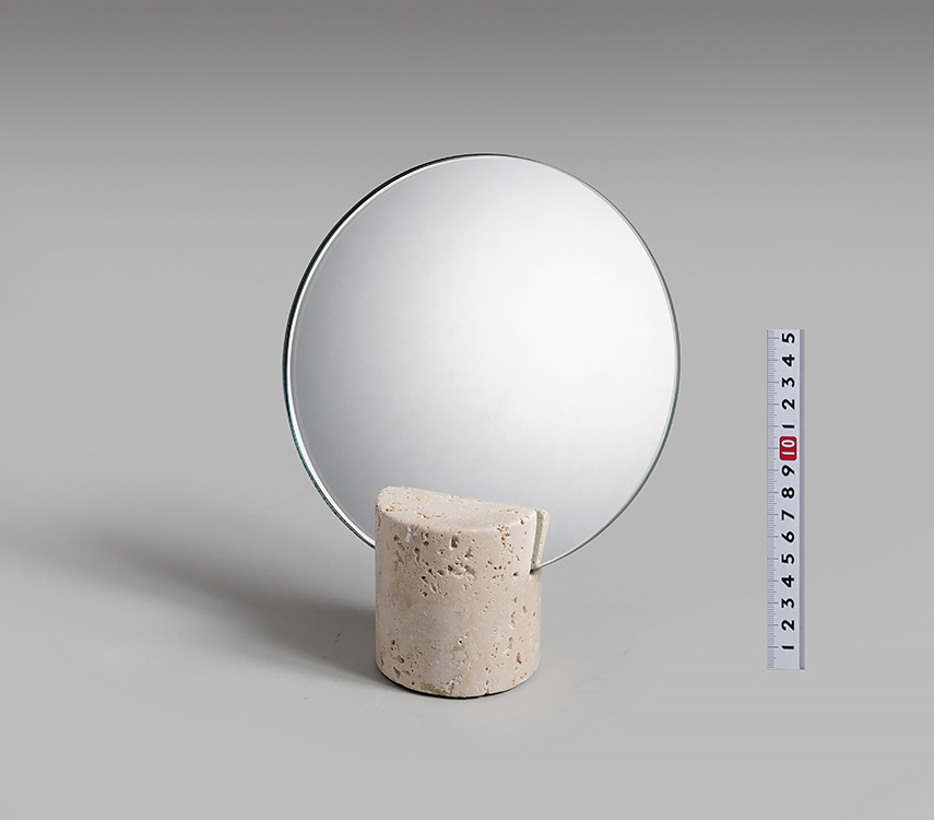 スタンドミラー 丸&円柱大理石ベース (ベージュ) H210