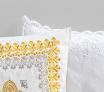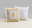 クッションカバー 40×40 白地黄刺繍額縁 / ベルギーレース白