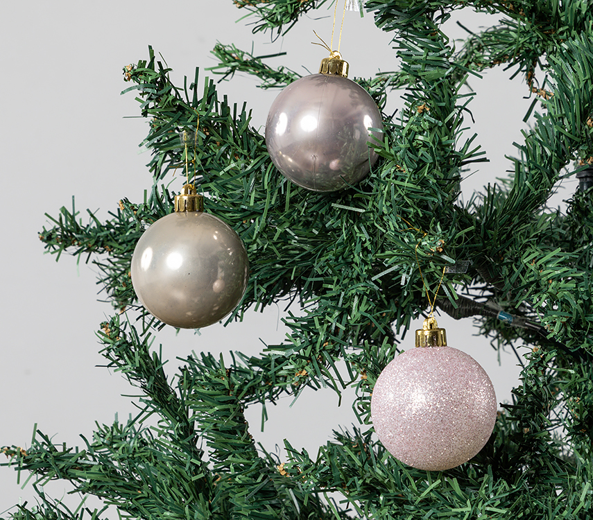 ツリー飾り ボールφ60 (淡ピンクラメ、パールピンク) 8個組