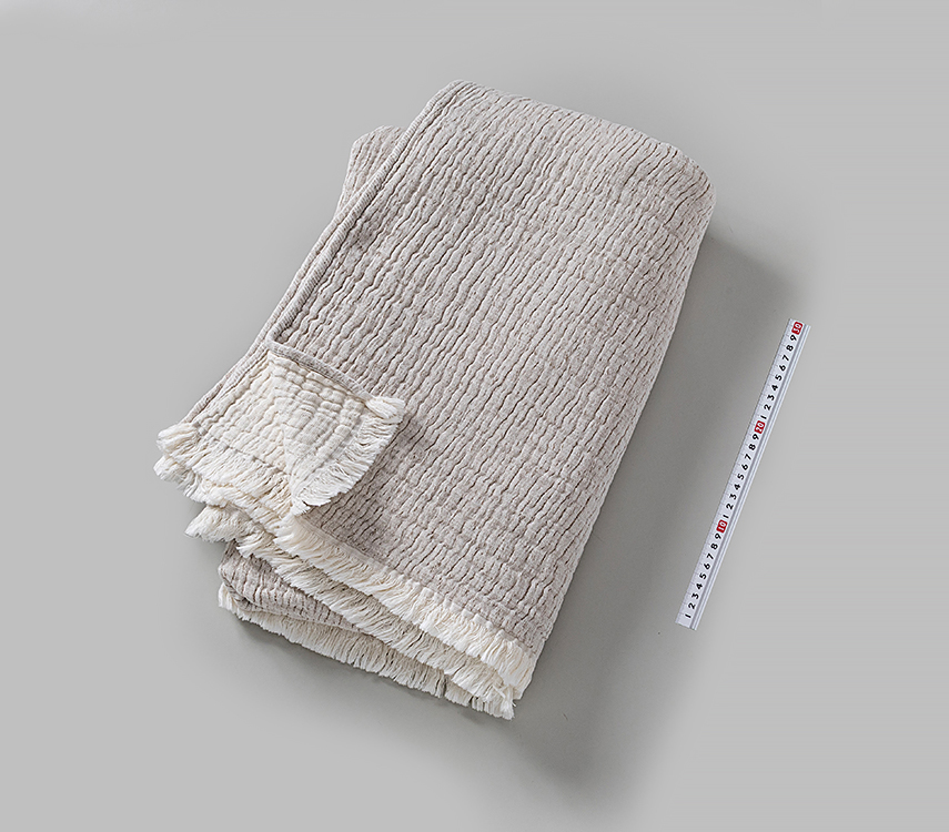 ガーゼケット (グレージュ×ホワイト) フリンジ 2060×1450