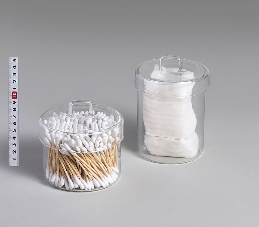 化粧小物入 (ガラス・円柱) S・竹綿棒入 / コットン入 蓋付 H105