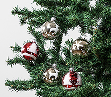 ツリー飾り クリスタルボール (シルバートナカイ3、赤ツリー2) 5個組