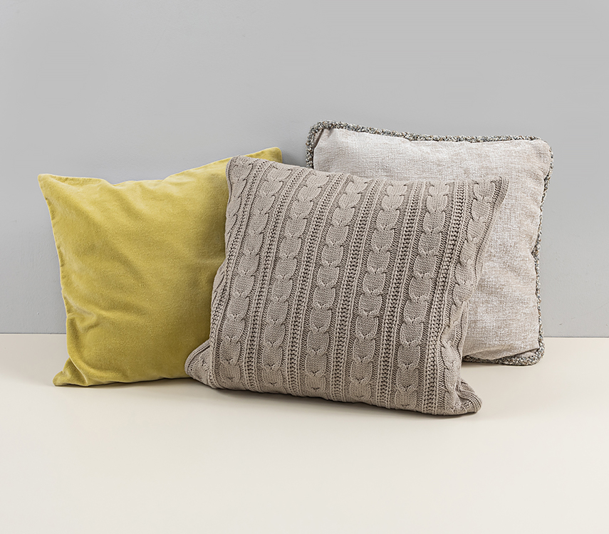クッションカバー40×40 ベロアグレー無地・縁フリンジ