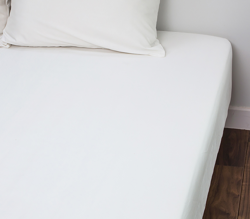 ボックスシーツ (クィーン) オフ白 インド綿サテン織