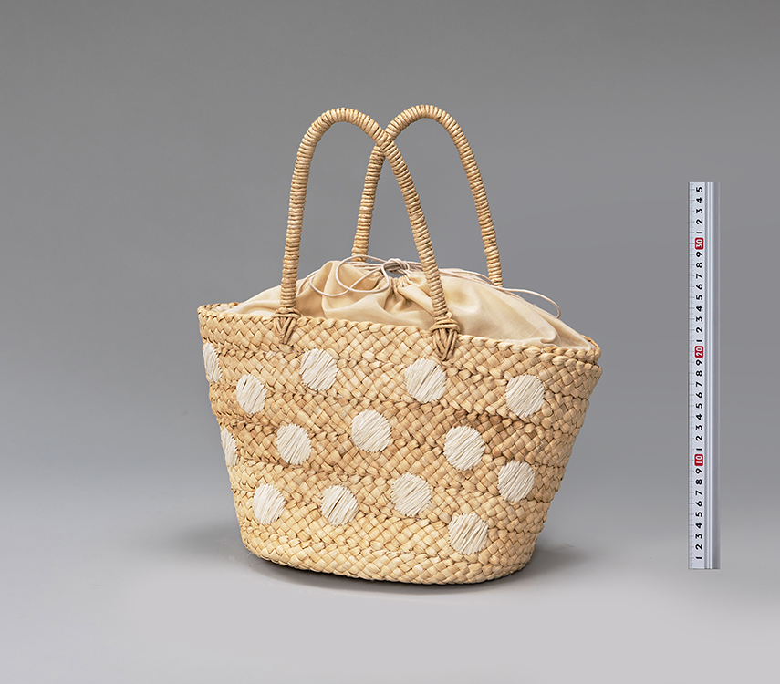 カゴバッグ ナチュラル (表ドット・裏無地)