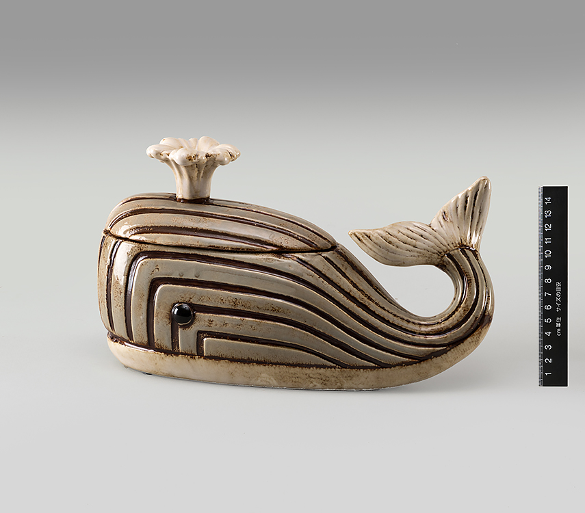クジラの置物 (陶器・ブルー) 蓋付 KARE