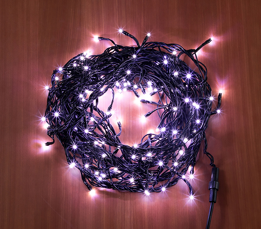 クリスマスツリーライト (LEDライト) ホワイト光 黒ライン 140球
