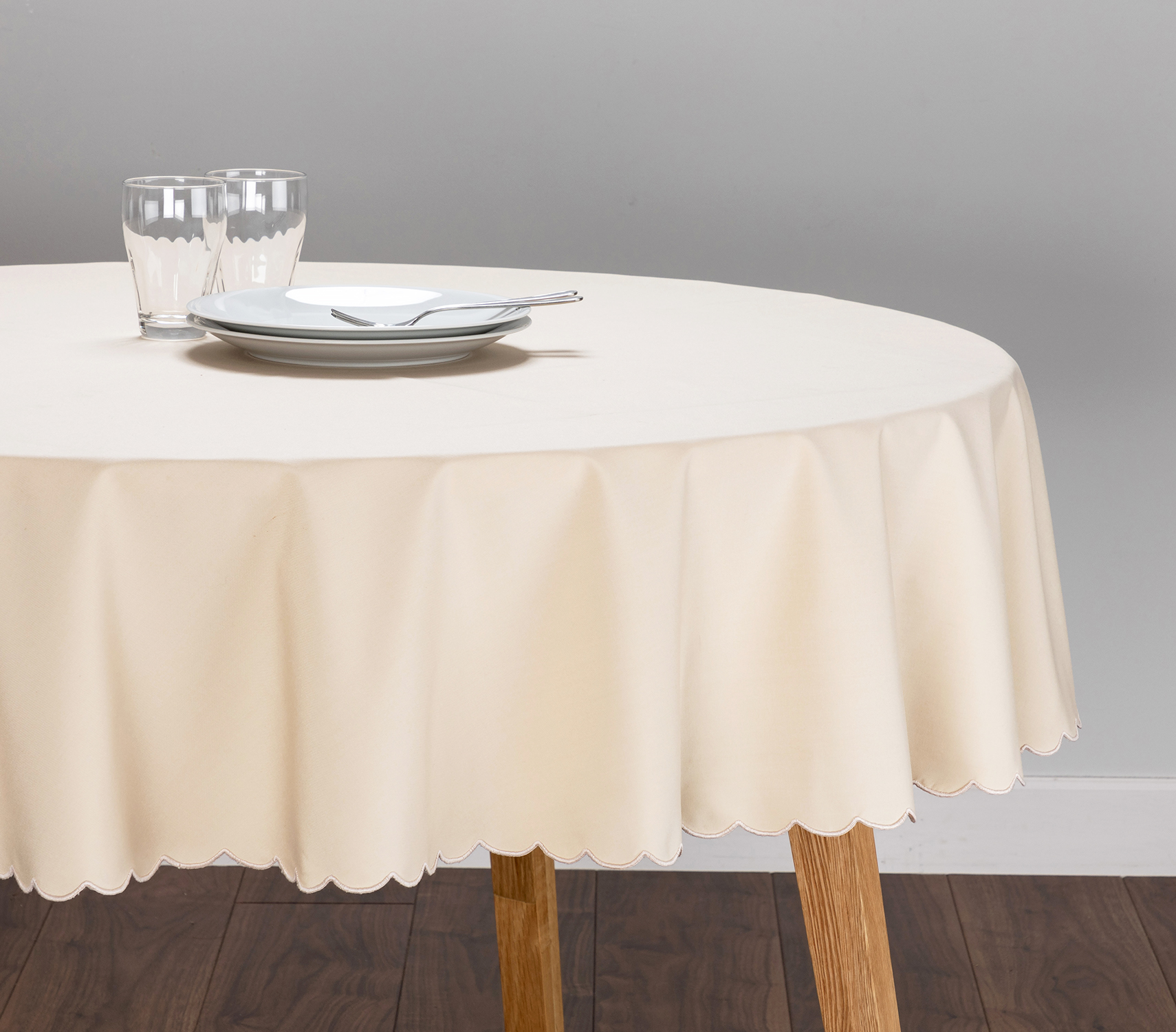テーブルクロス 丸 (ベージュ) 縁スカラップ φ1700