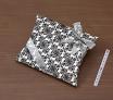 ギフトボックス ピロー形 白地黒ダマスク/英字新聞風