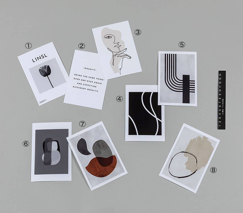 ポストカード LINSL 5種 モノトーン/ベージュ/幾何柄等