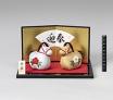 お正月用品 午 (金銀縮緬馬) 屏風・黒台・赤布付 H105