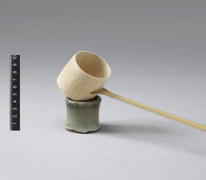 茶道具 陶器蓋置 (灰緑釉斑茶) H46