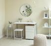 別々に活躍する天板、脚、鏡、スツール、ワゴンを組み合わせたドレッサー |
