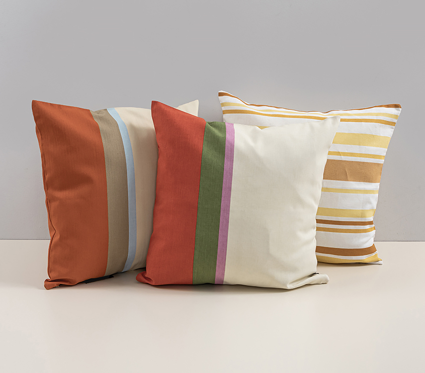 クッションカバー 45×45 ストライプ オレンジ&茶・水色