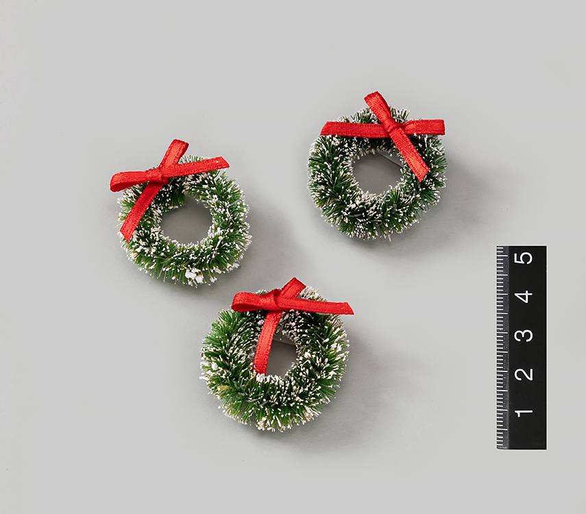 クリスマス小物 ミニグリーンリースオブジェ φ30 3個組