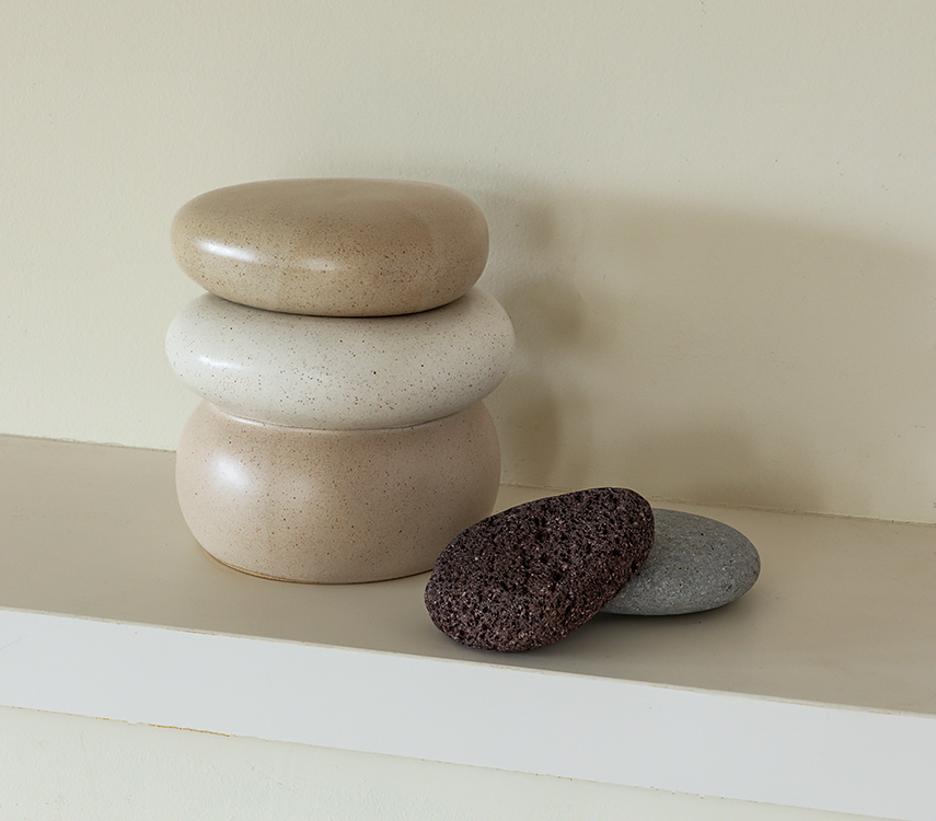 マルチキャニスター ペブル (アイボリー系) 蓋付 H150