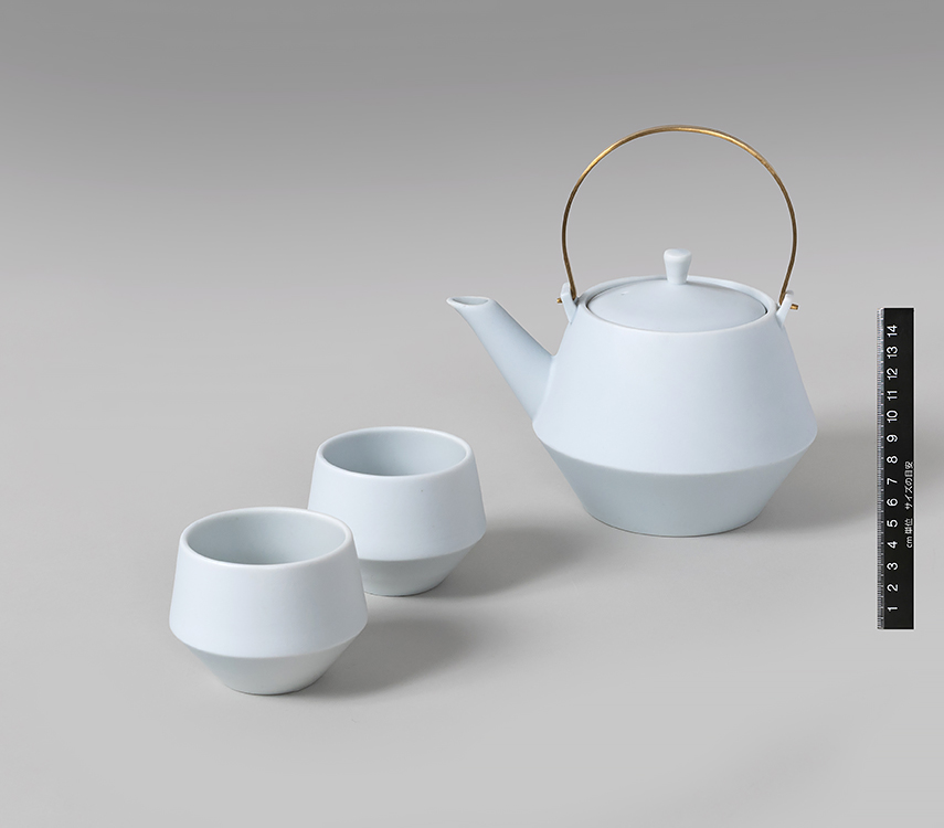 急須 フラスタム (マットホワイト) 持ち手真鍮&湯呑
