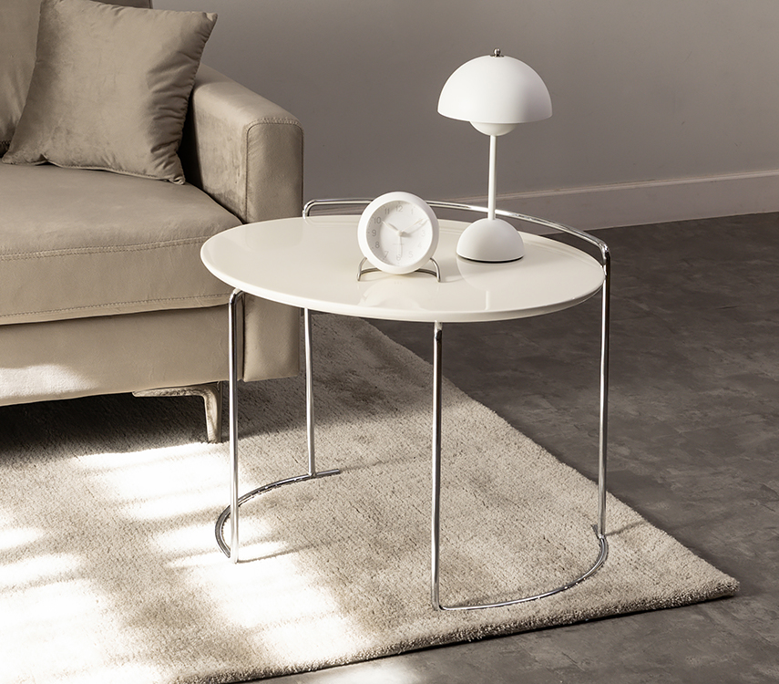 エリッセサイドテーブル (ツヤオフホワイト) 脚・クローム |