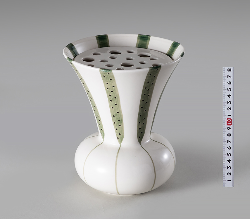 花瓶 (白地緑柄・陶器) ケーラー プレート付 H200