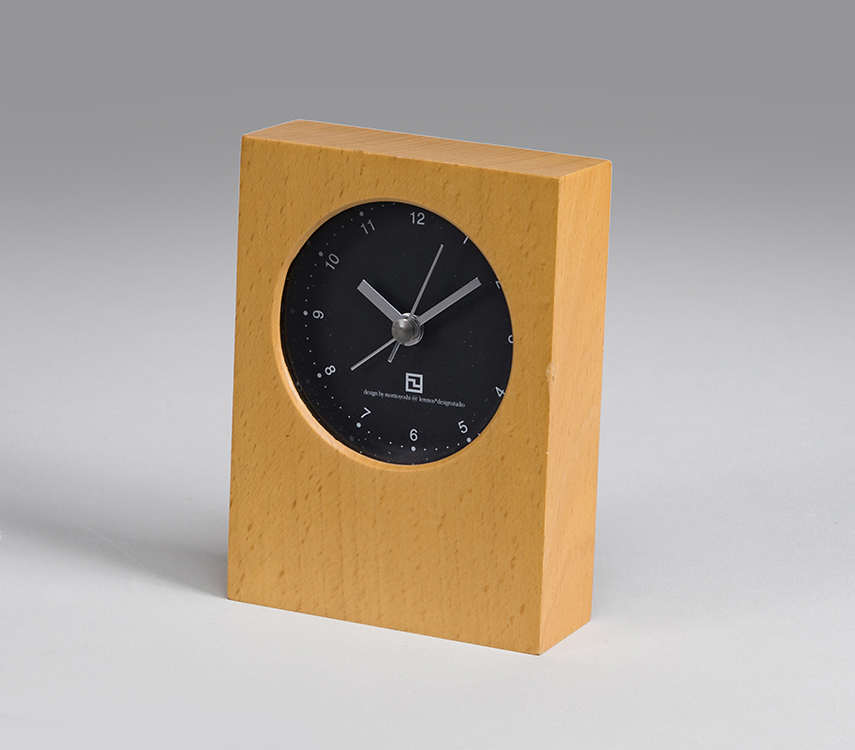 時計 (ウッドナチュラル) 角形・丸窓 文字盤・黒