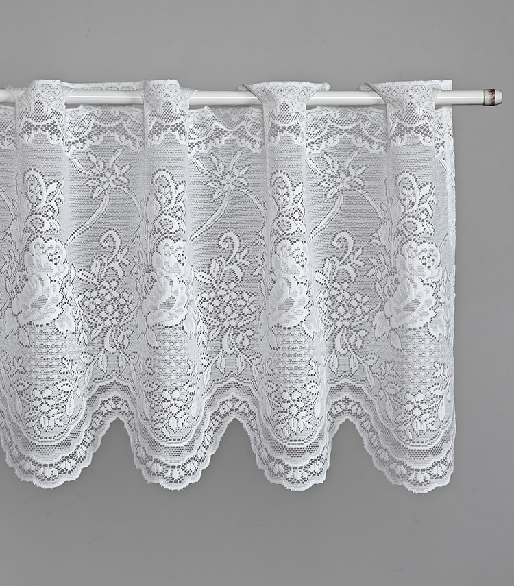 カフェカーテン (ホワイト・レース) ローズブーケ W1500 H450