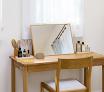 このデスクは、色味の合う鏡を乗せてドレッサーに、別品番のブックシェルフを |