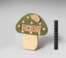 卓上カレンダー キノコ&ハリネズミ (ウッド・緑) H120