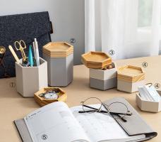 小物入れ (グレーレジン) 六角形&蓋ウッド L