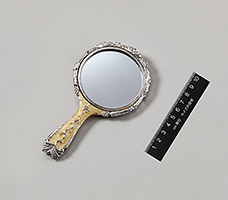 手鏡 (丸・シルバー&アイボリー) 七宝風 H160