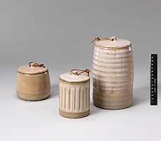 キャニスター (陶器・ベージュ) レザー紐付 S/M/L デンマーク