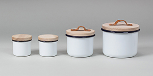 キャニスター ツートン (陶器) 蓋ウッド&スウェード取手